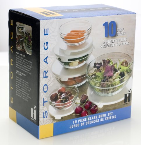 #1: Housewares International 10-Piece Clear Glass Bowl Storage Set with White Lids, Round Reviews!